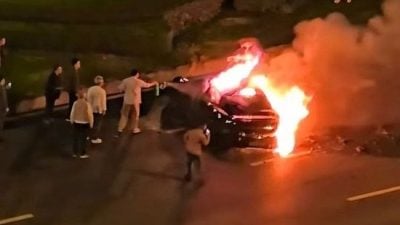 ネット上に拡散されたドライブレコーダー映像によると、事故当時の道路は比較的空いており、問題の車両は時速104キロで走行する車を追い越した直後に衝突し、車体前方から火が上がった。救助に駆け付けた4人がドアや窓を「拳で叩き、足で蹴る」姿も映っているが、ドアロックは解除されなかった。