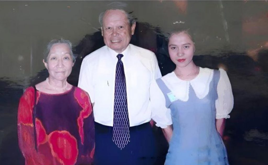 1995年、左から楊氏の夫人である杜致礼氏、 楊振寧氏、翁帆氏