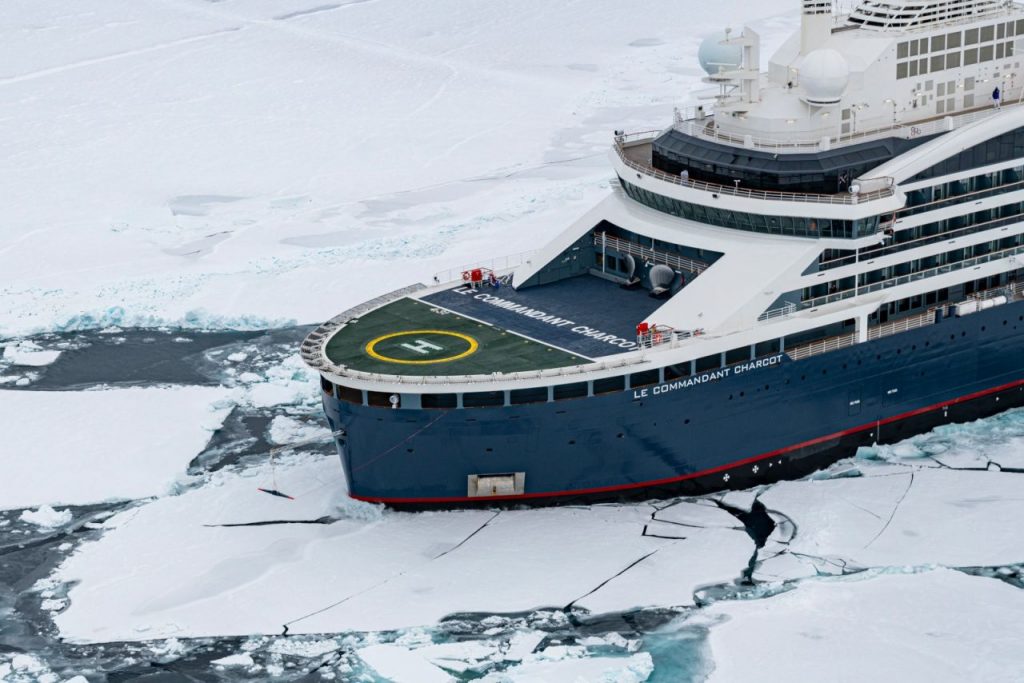公開情報によれば、「コマンダン・シャク号」は2021年に就航、乗客定員は245人。船内には露天温泉、劇場、探険用のゴムボートなどが備えられ、北極点への到達、ベリンツォン海やロス海などの秘境エリア探訪。上陸者より月面着陸者の方が多いと言われるピーター1世島への接近など、一般の観光では難しい探険体験が売りとなっている。