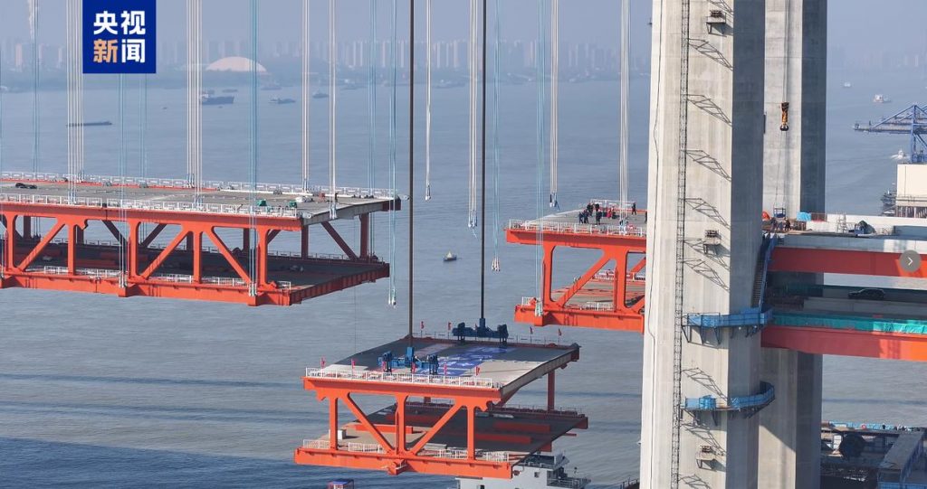 中国中央テレビの放送によると、11月22日午前10時頃、冬の陽光が差し込む湖北省黄岡市と鄂州市の長江水域で、巨大な鋼桁の最後の一節が正確に吊り上げられ、所定の位置に設置された。これにより、湖北交通投資グループが出資し、中国交通建設第二航務工程局と中国鉄道大橋局が施工した「世界最大スパンの四本主ケーブル吊橋」である燕磯(えんじ)長江大橋が無事に合龍を迎えた。長江流域にまた新たなランドマークが誕生したことになる。