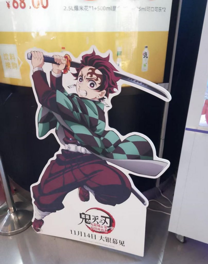 8階の映画館にはこのような上映宣伝用の飾り物もあった。日本のエンタメは公開を控えるようにとの指針が出ている中だが、この映画は普通に上映されているようだ。。