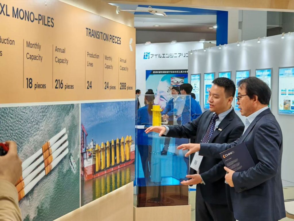 これはCWHIにとって、2025年に続き2回目の日本風力発電展への参加となる。陶磊副総経理は「日本は海洋大国であり、海上風力発電の発展は基本国策となっている。市場規模も大きい。私たちは日本市場を強く支援する意思と決意を持っている。中日両国は地理的に非常に近い。現在、欧州や英国への輸出では海上輸送距離が長すぎるためコストが上昇してしまうが、CWHIの天津生産基地や響水生産基地から日本へはわずか3日間の航程で済む。高品質かつ低コストの海上風力発電鋼構造物を提供できる。また、日本国内のサプライチェーンを開発し、現地資源を活用して日本市場を支えたい」と語った。