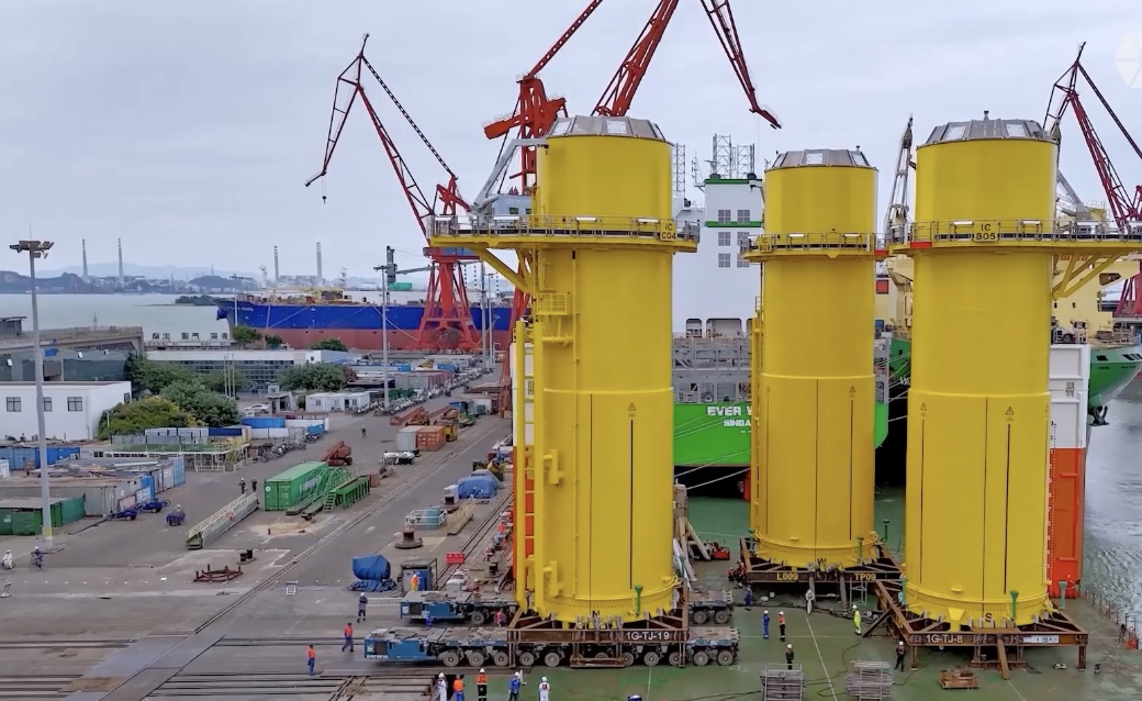 CWHIの副総経理・陶磊氏は中国経済新聞の取材に対し、次のように説明した。基礎杭は長さ108メートル、トランジション・ピースは30メートルで、これらを連結した単体重量は2300トンを超える。これは世界同種製品で最大規模の設計であり、すべて中国広東省と広西チワン族自治区の工場で製造された。
