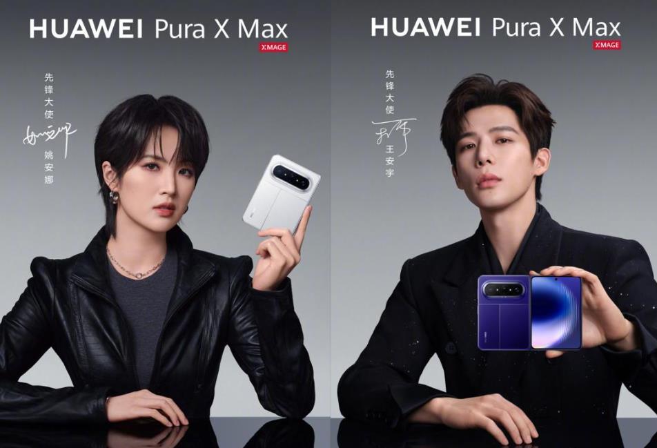 公開されたビジュアルでは、姚安娜が黒のレザージャケット姿で登場し、スタイリッシュで力強い印象を演出。手にしたPura X Maxは、折りたたむとコンパクトでありながら、展開時には存在感のあるデザインが際立つ。一方、王安宇はシンプルなスーツ姿で落ち着いた雰囲気を見せ、2人が並ぶことで調和と個性の双方を引き立てている。